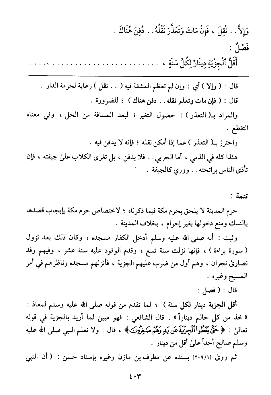هذا كله في الذمي، أما الحربي .. فلا يدفن. بل تغري الكلاب علي جيفته، فإن تأذي الناس برائحته ...