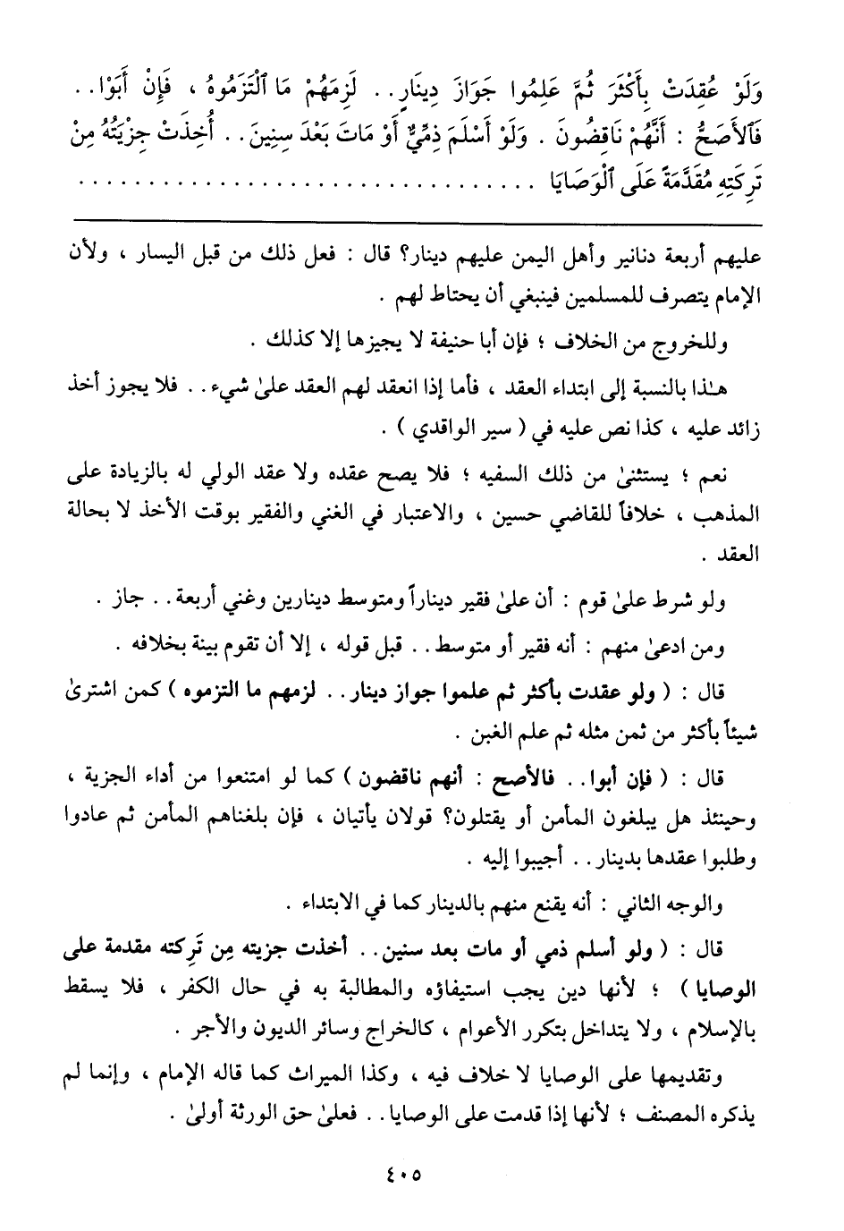 وَلَوْ عُقِدَتٌ بِأَكْثَرَ ثُمَّ عَمِلُوا جَوّازَ دِينَار .... لَزِمَهُمٌ مَا أَلٌتَزَمٌوهُ, فَإِنْ أَبَوْا ... فَالَأصَحُّ: أَنَّهُمٌ نَاقِصُونَ. وَلَوُّ أَسلَمَ ذِ مَّيِّ أَو مَاتَ بَعدَ سِنِينَ .. ُأخِذِتْ جِزْيَتُهُ مِنْ تَرِكَتِهِ مُقَدَّمَهً عَلَي اَلوَصَايَا