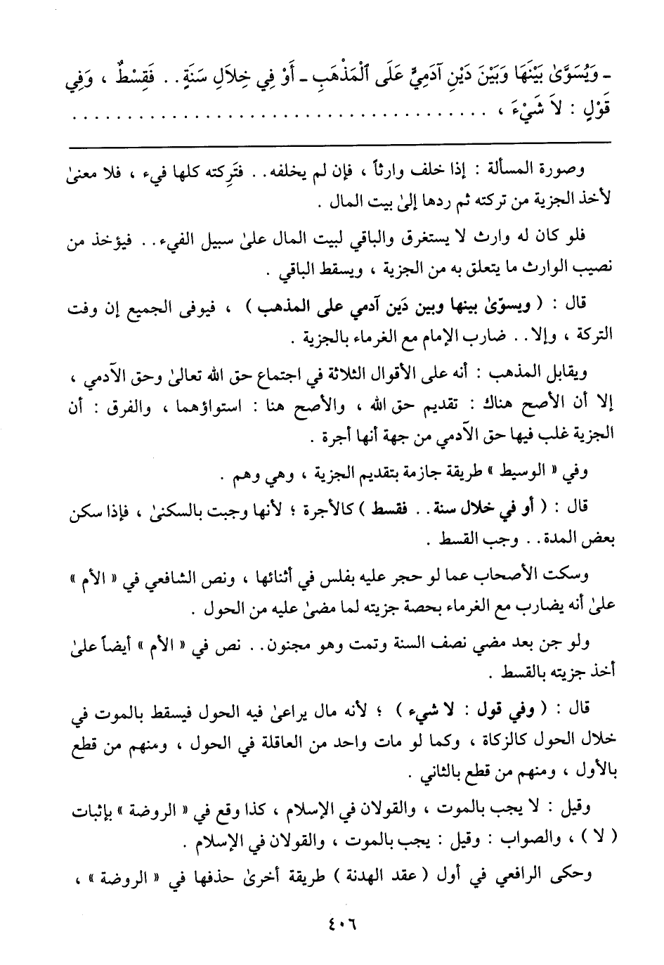فلو كان له وارث لا يستغرق والباقي لبيت المال على سبيل الفيء .. فيؤخذ من نصيب الوارث ما يتعلق به من الجزية, ويسقط الباقي.