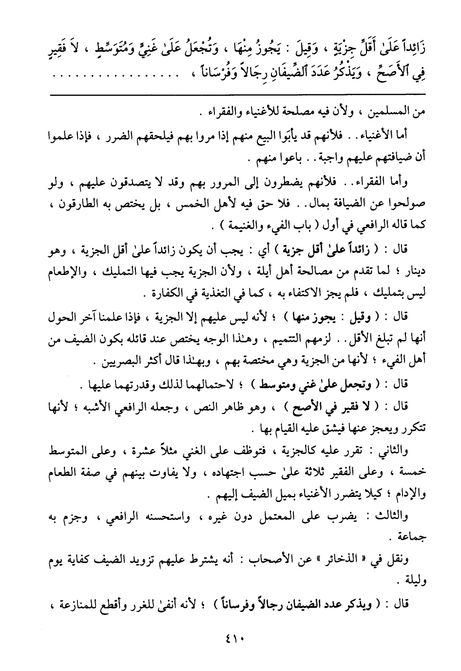 زَائدًا عَلَي أَقَلّ جِزِيَة, وَقِيلَ: يَجُوزُ مِنْهَا, وَتُجْعَلُ عَلَي غَنِيِّ وَمُتَوَسِّطٍ, لاَ فَقِيرٍ فِي الأَصَحّ, وَيَذْكُرُ عَدَدَ الضِّيفَانِ رِجَالًا وفُرسَانًا,