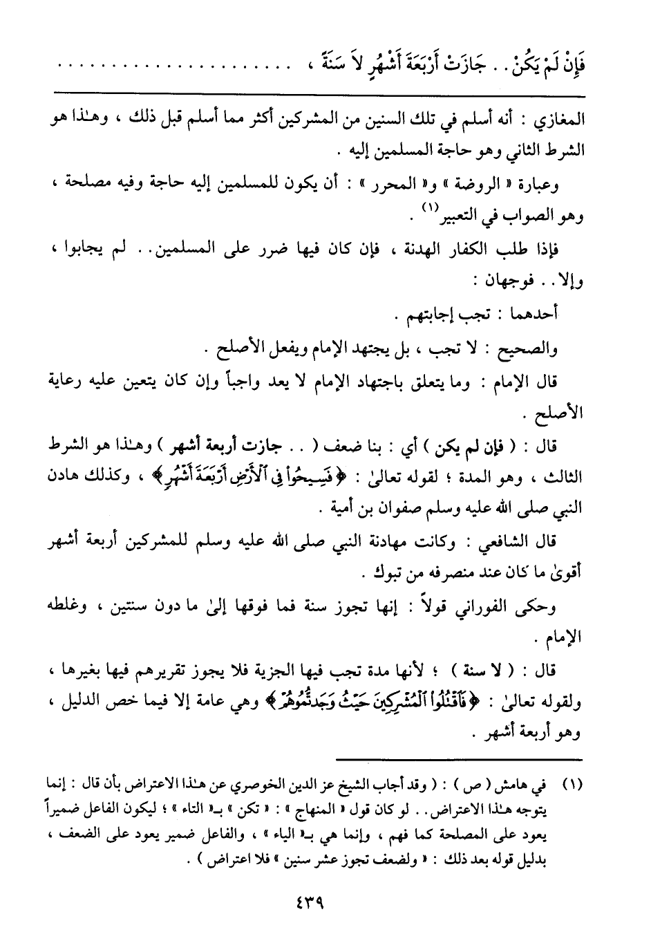 قال الشافعي: وكانت مهادنة النبي صل الله عليه وسلم للمشركين أربعة أشهر أقوي ما كان عند منصرفه من تبوك.