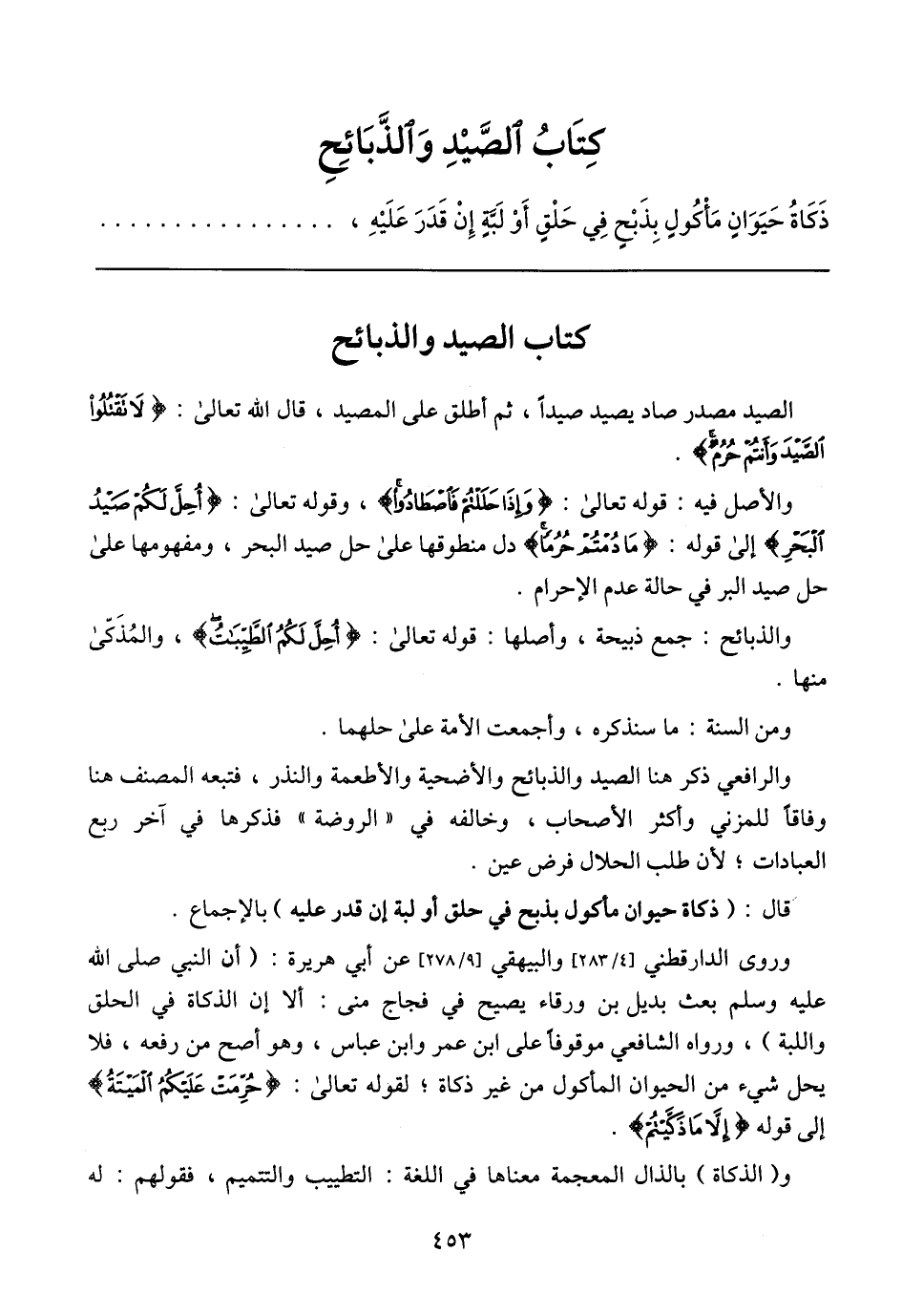والرافعي ذكر هنا الصيد والذبائح والأضحية والأطعمة والنذر، فتبعه المصنف هنا وفاقًا للمزني وأكثر الأصحاب، وخالفه في (الروضة) فذكرها في آخر ربع العبادات؛ لأن طلب الحلال فرض عين.