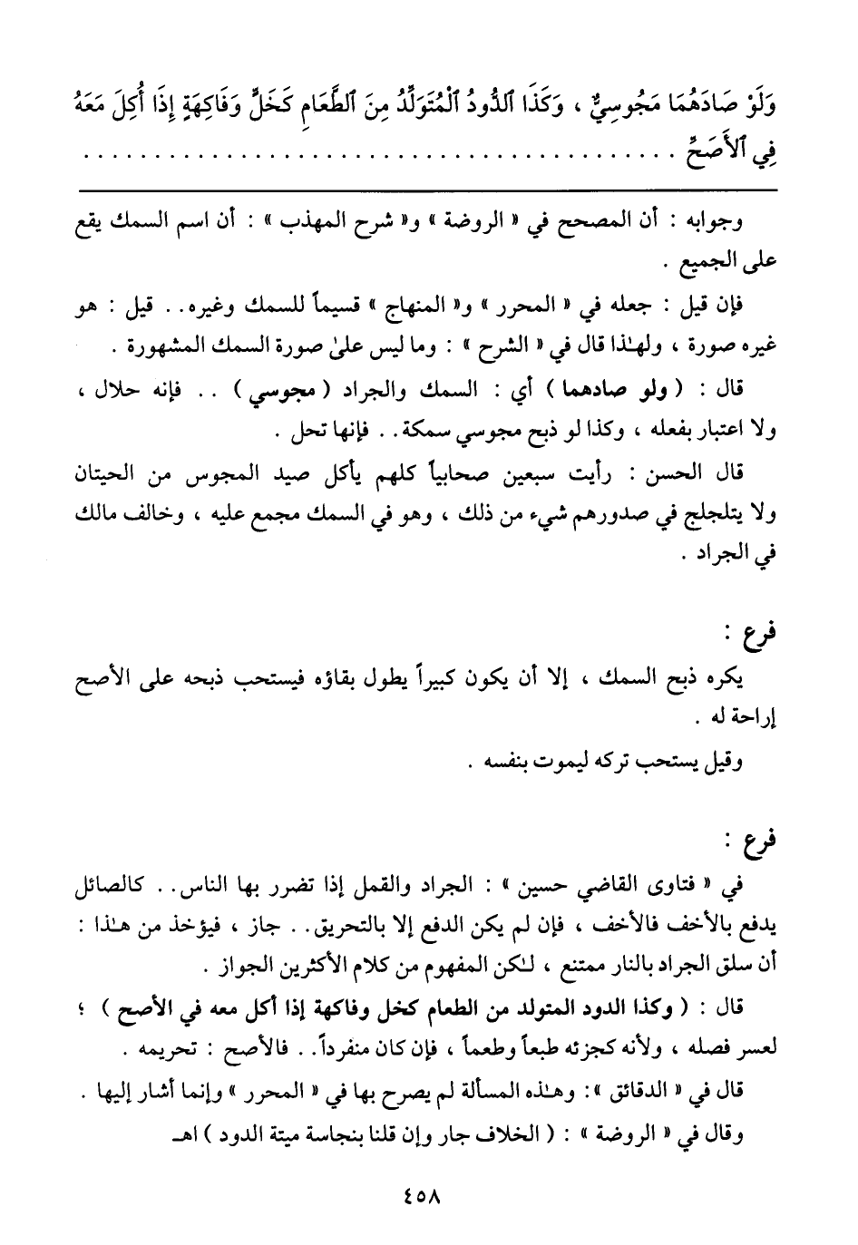 فإن قيل: جعله في (المحرر) و (المنهاج) قسيمًا للسمك وغيره ... قيل: هو غيره صورة، ولهذا قال في (الشرح): وما ليس على صورة السمك المشهورة.