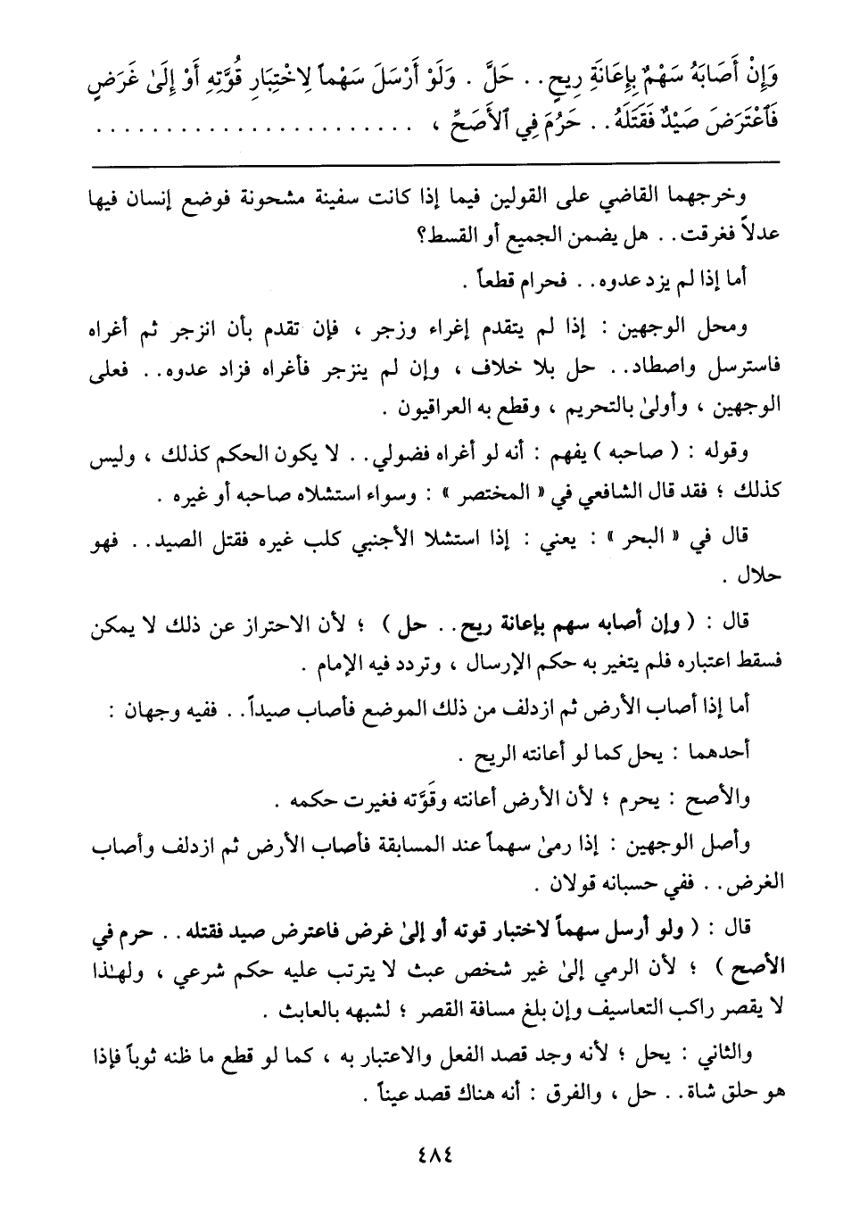 وَإِنْ أَصَابَهُ سَهْمٌ بِإِعَانَةِ رِيحٍ .. حَلَّ. وَلَوْ أَرْسَلَ سَهْمًا لاخْتِبَارِ قُوَّتِهِ أَوْ إِلَى غَرَضٍ فَاعْتَرَضَ صَيْدٌ فَقَتَلَهُ .. حَرُمَ فِي الأَصَحِّ،
