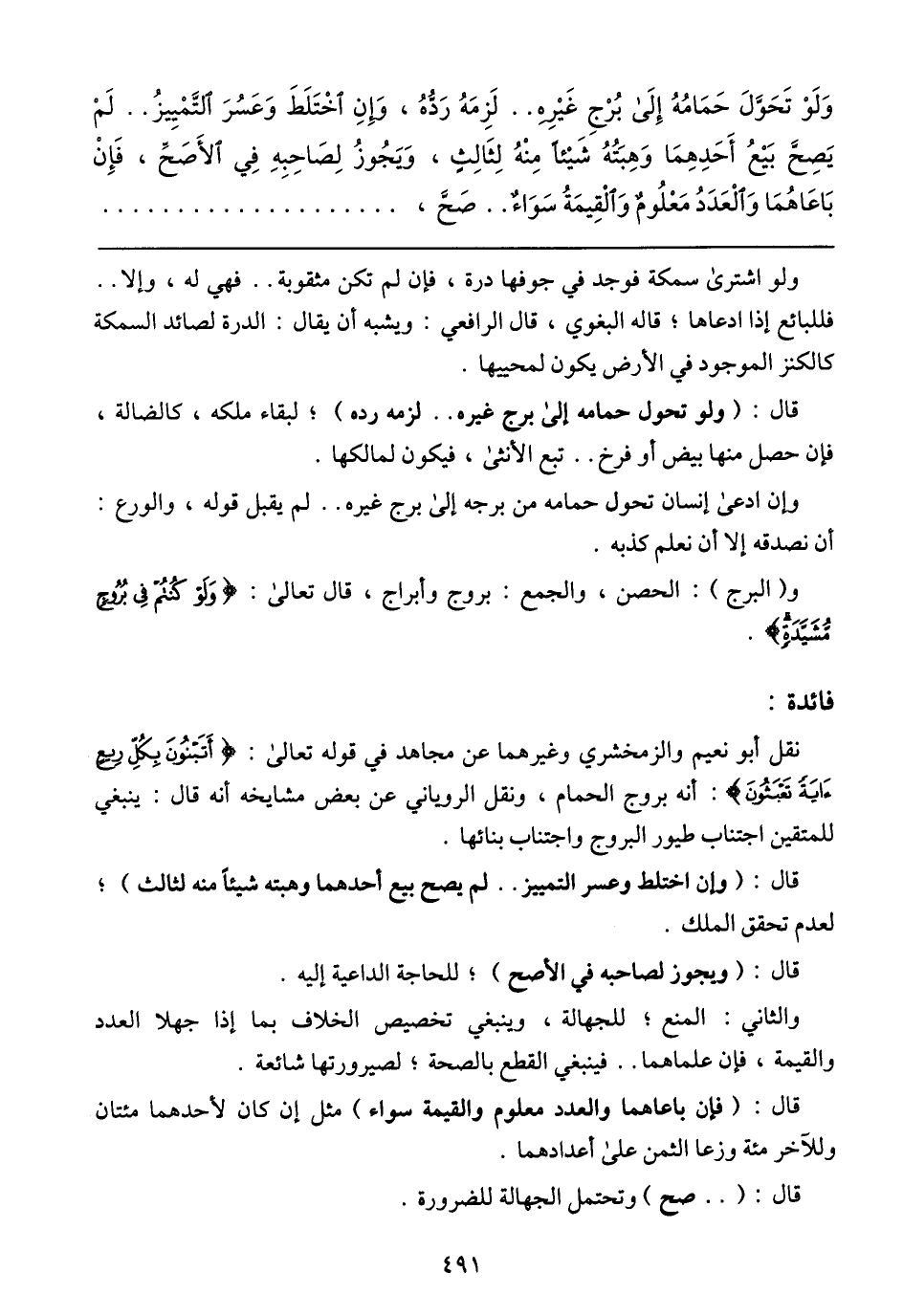 وَلَوْ تَحَوَّلَ حَمَامُهُ إِلَى بُرْجِ غَيْرِهِ .. لَزِمَهُ رَدُّهُ، وَإِنِ اخْتَلَطَ وَعَسُرَ التَّمْيِيزُ .. لَمْ يَصِحَّ بَيْعُ أَحَدِهِمَا وَهِبَتُهُ شَيْئًا مِنْهُ لِثَالِثٍ، وَيَجُوزُ لِصَاحِبِهِ فِي الأَصَحِّ، فَإِنْ بَاعَاهُمَا وَالْعَدَدُ مَعْلُومٌ وَالْقِيمَةُ سَوَاءٌ .. صَحَّ،