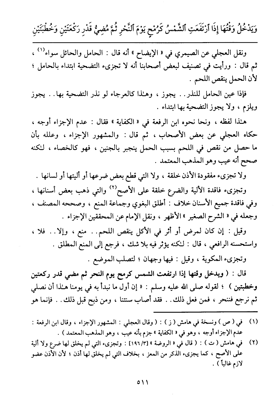 هذا لفظه، ونحا نحوه ابن الرفعة في (الكفاية) فقال: عدم الإجزاء أوجه، حكاه العجلي عن بعض الأصحاب، ثم قال: والمشهور الإجزاء، وعلله بأن ما حصل من نقص في اللحم بسبب الحمل ينجبر بالجنين، فهو كالخصاء، لكنه صحح أنه عيب وهو المذهب المعتمد.