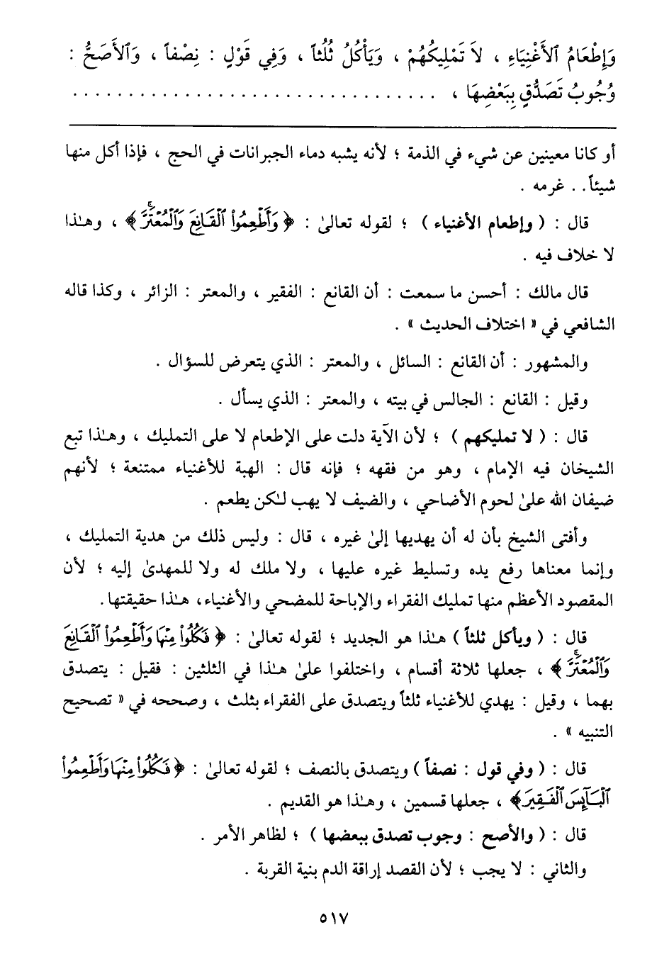 قال: (وإطعام الأغنياء)؛ لقوله تعالى: {وَأَطْعِمُوا القَانِعَ وَالْمُعْتَرّ}، وهذا لا خلاف فيه.