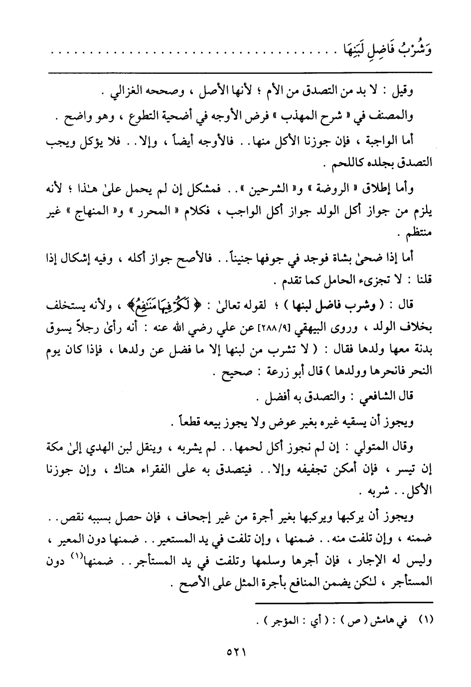 وَشُرْبُ فَاضِلِ لَبَنِهَا