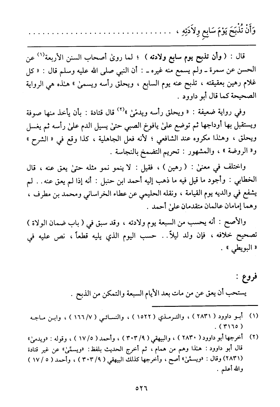 وَأَنْ تُذْبَحَ يَوْمَ سَابِعِ وِلاَدَتِهِ،