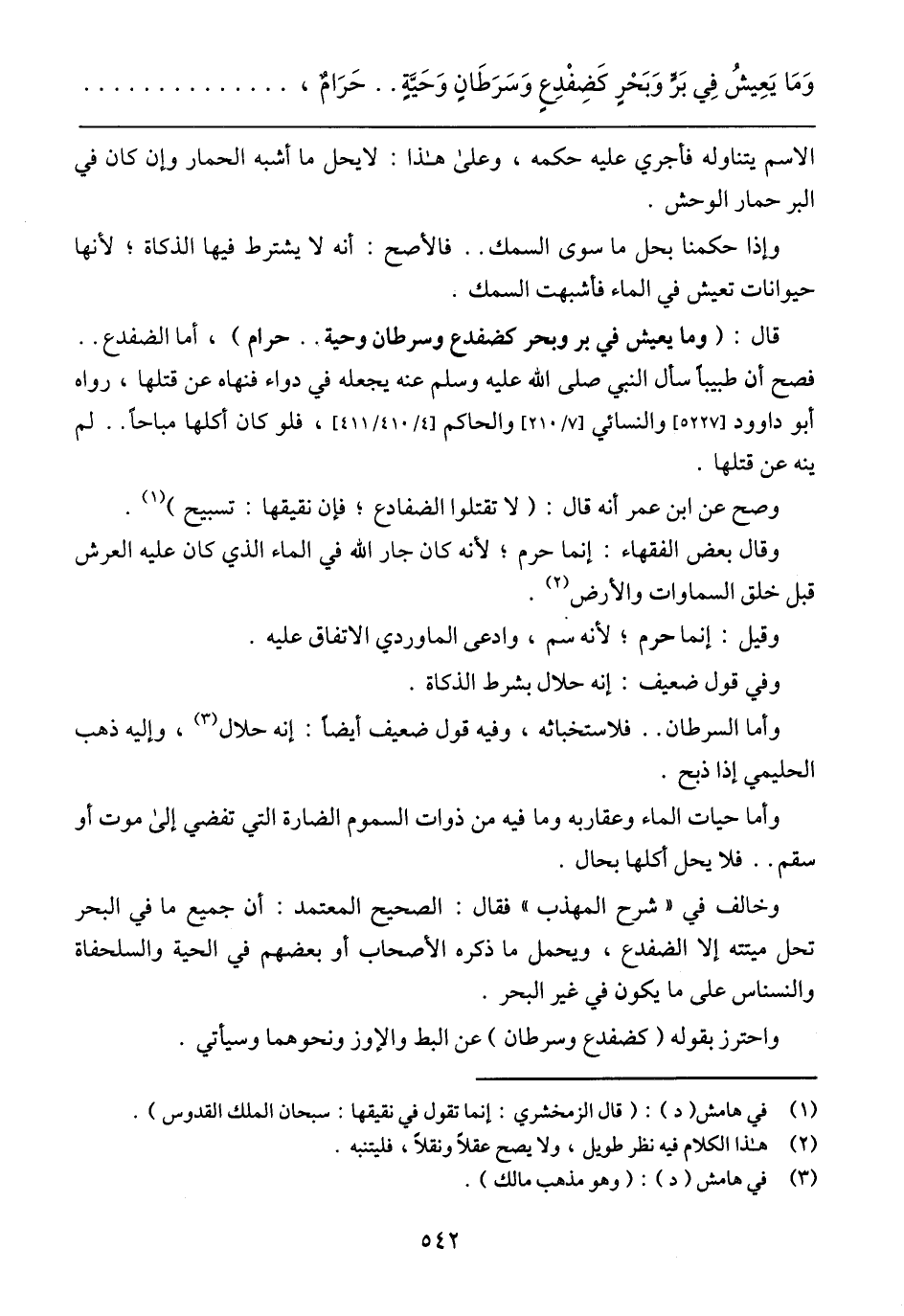 وَمَا يَعِيشُ فِي بَرٍّ وَبَحْرٍ كَضِفْدِعٍ وَسَرَطَانٍ وَحَيَّةٍ .. حَرَامٌ،