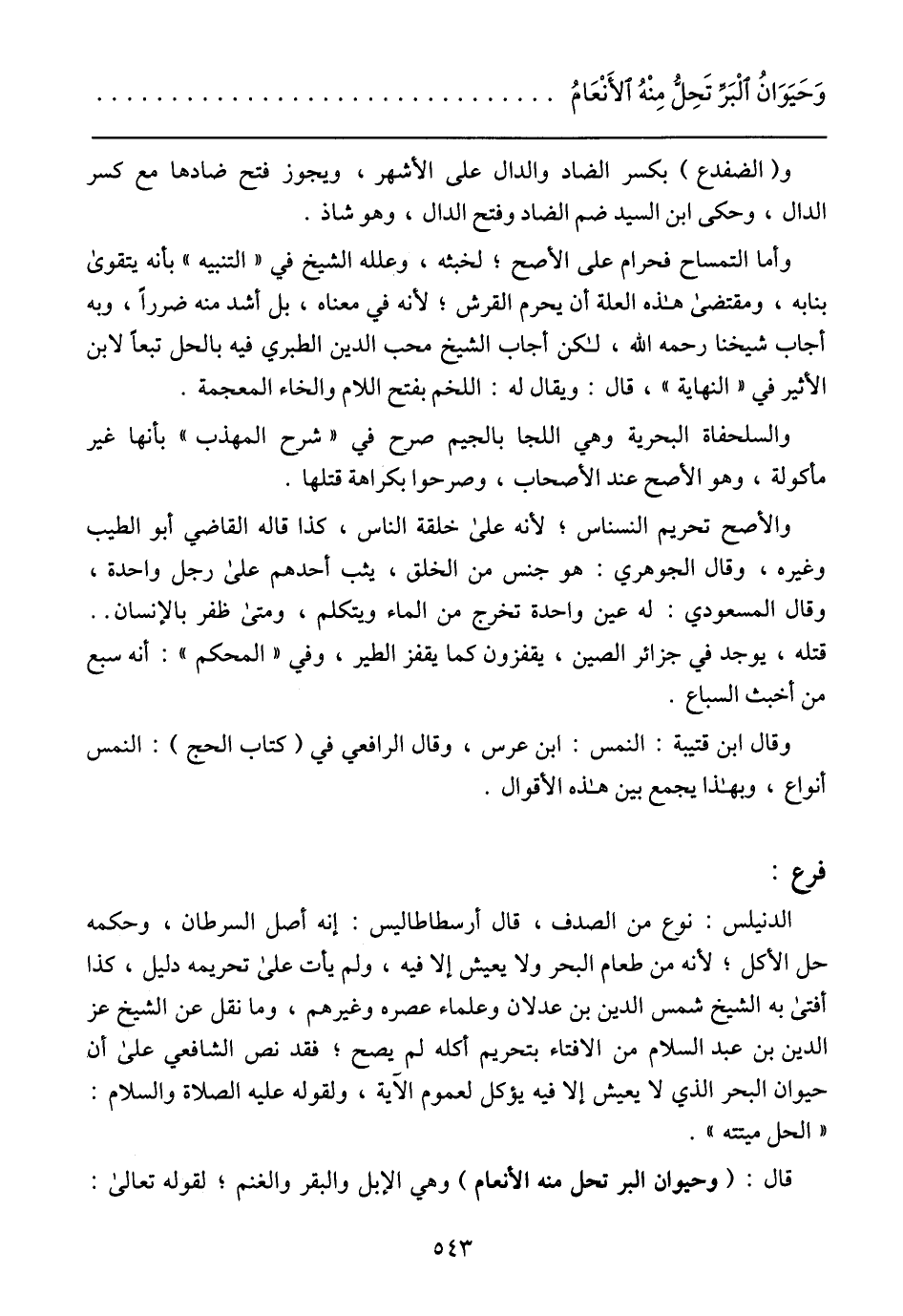 وَحَيَوانُ الْبَرِّ تَحِلُّ مِنْهُ الأَنْعَامُ