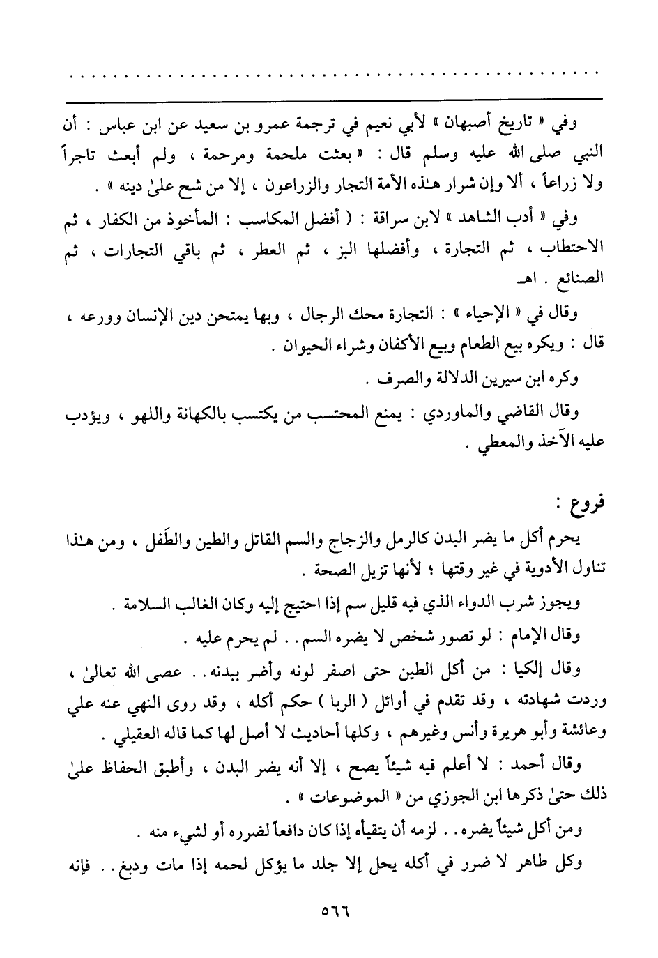 وفي (تاريخ أصبهان) لأبي نعيم في ترجمة عمرو بن سعيد عن ابن عباس: أن النبي صلى الله عليه وسلم قال: (بعثت ملحمة ومرحمة، ولم أبعث تاجرًا ولا زارعًا، ألا وإن شرار هذه الأمة التجار والزراعون، إلا من شح على دينه).