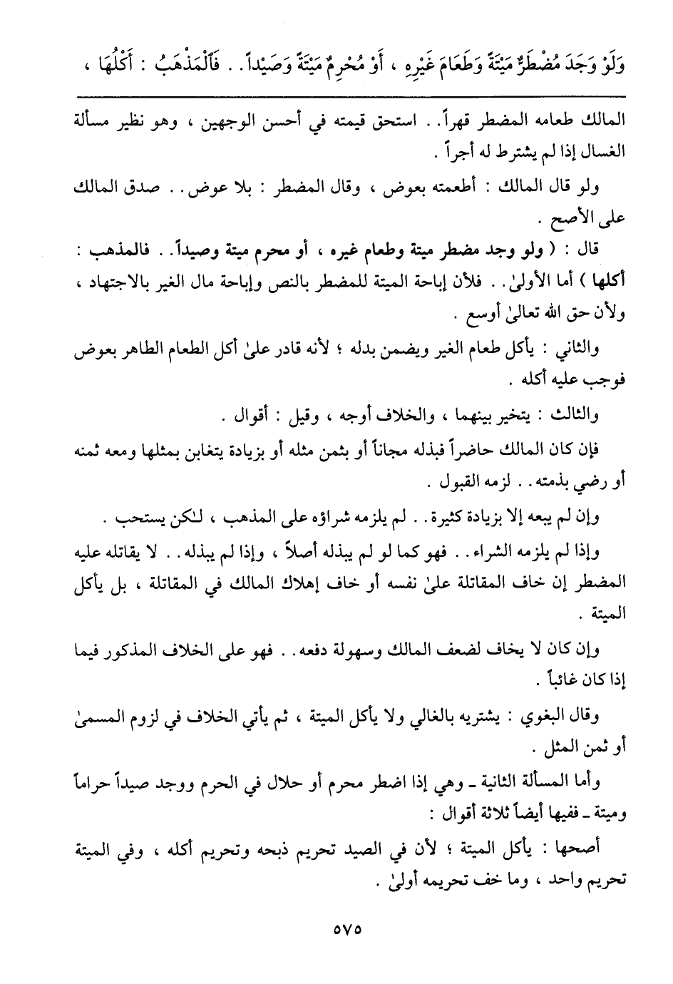 وإذا لم يلزمه الشراء .. فهو كما لو لم يبذله أصلاً، وإذا لم يبذله .. لا يقاتله عليه المضطر إن خاف المقاتلة على نفسه أو خاف إهلاك المالك في المقاتلة، بل يأكل الميتة.