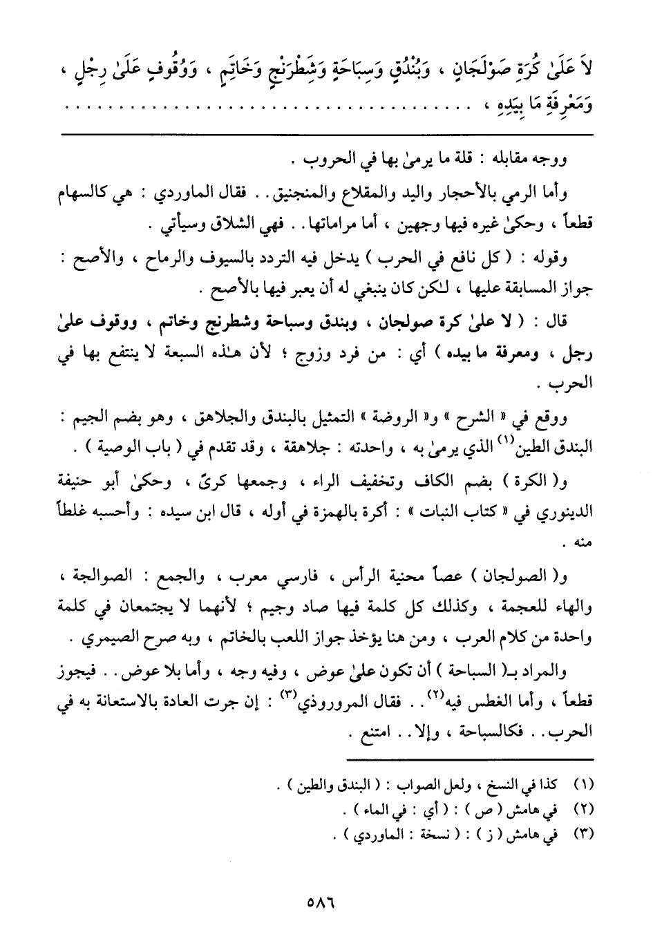 قال: (لا على كرة صولجان، وبندق وسباحة وشطرنج وخاتم، ووقوف على رجل، ومعرفة ما بيده) أي: من فرد وزوج، لأن هذه السبعة لا ينتفع بها في الحرب.
