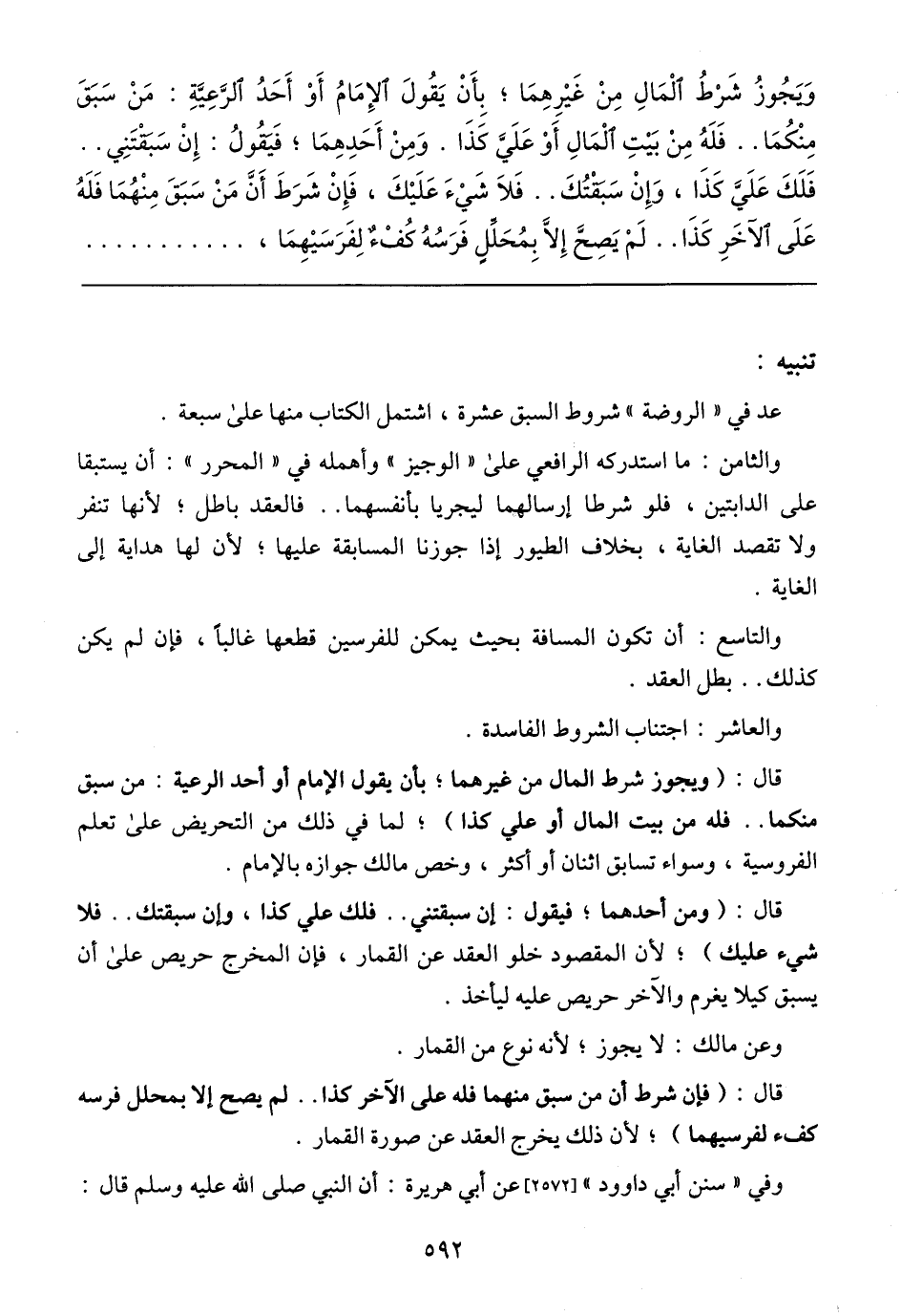 عد في (الروضة) شرط السبق عشرة، اشتمل الكتاب منها على سبعة.