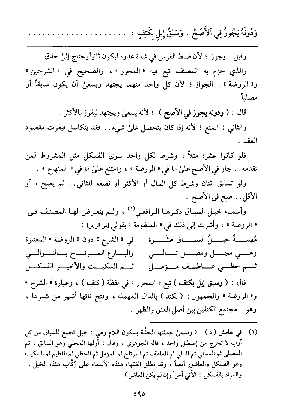 مُهمةٌ خيلُ السباق عشَرة .... في (الشرح) دون (الروضة) المعتبرة