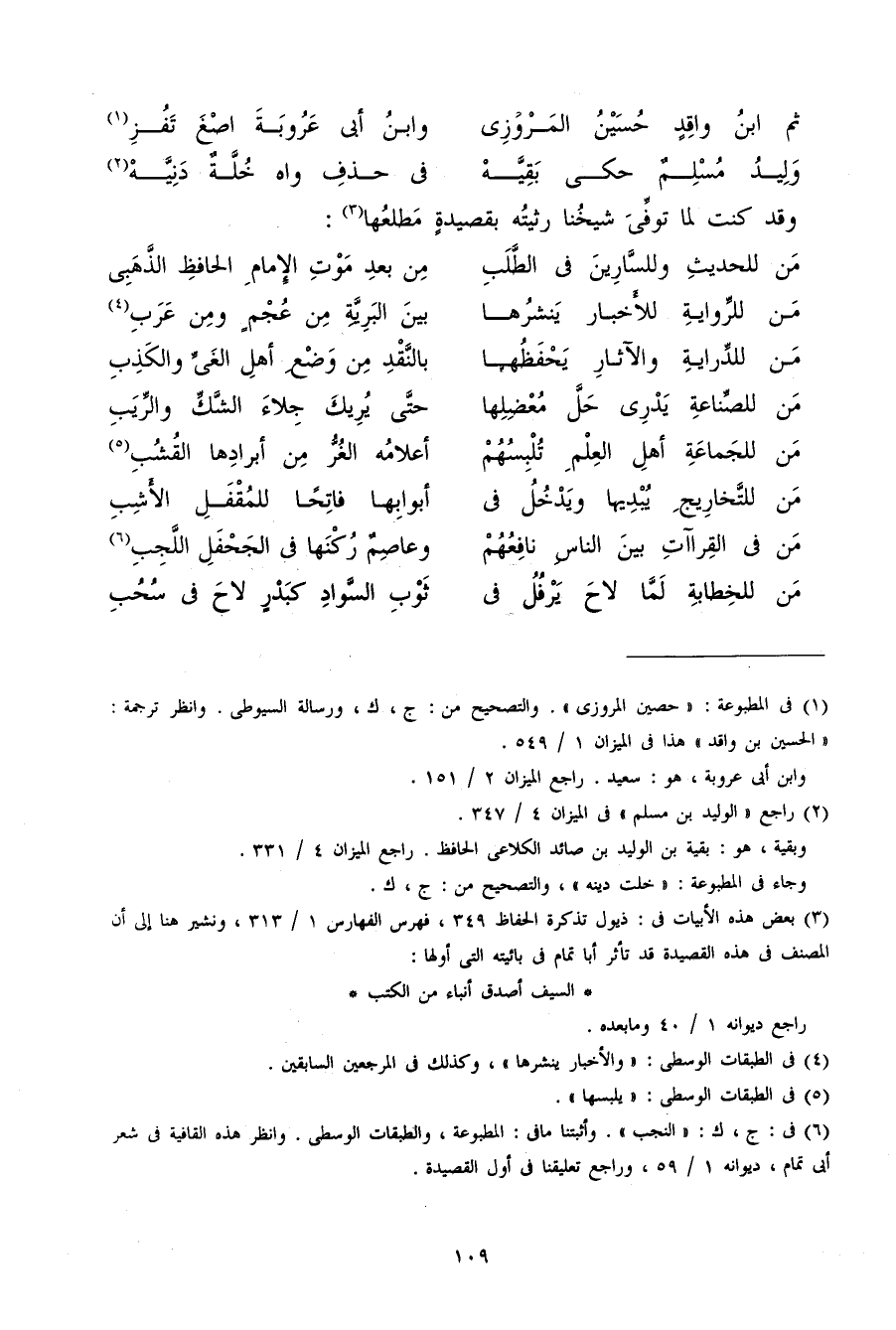 (من للْحَدِيث وللسارين فِي الطّلب ... من بعد موت الإِمَام الْحَافِظ الذَّهَبِيّ)