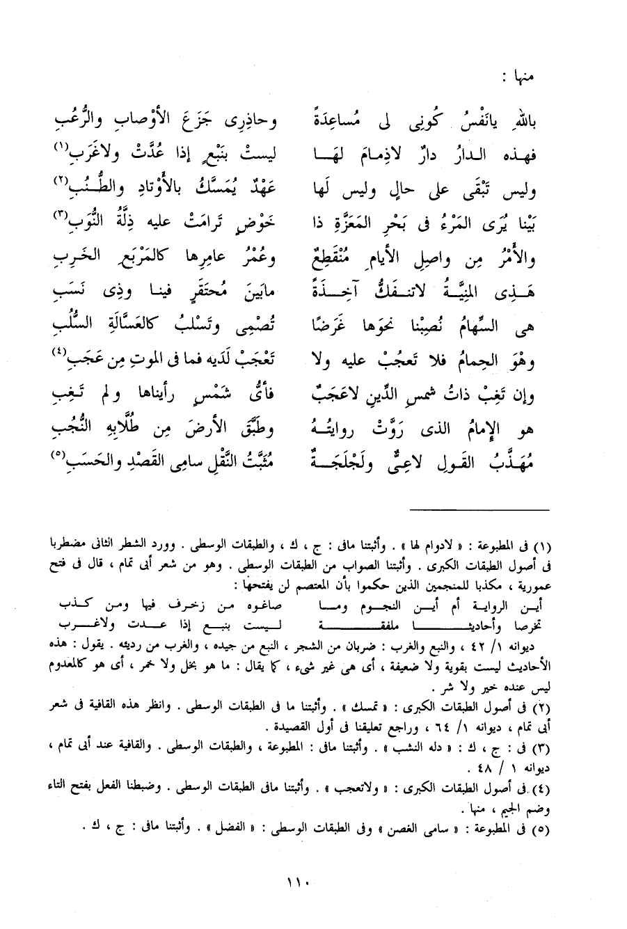 (بِاللَّه يَا نفس كوني لي مساعدة ... وحاذري جزع الأوصاب والرعب)