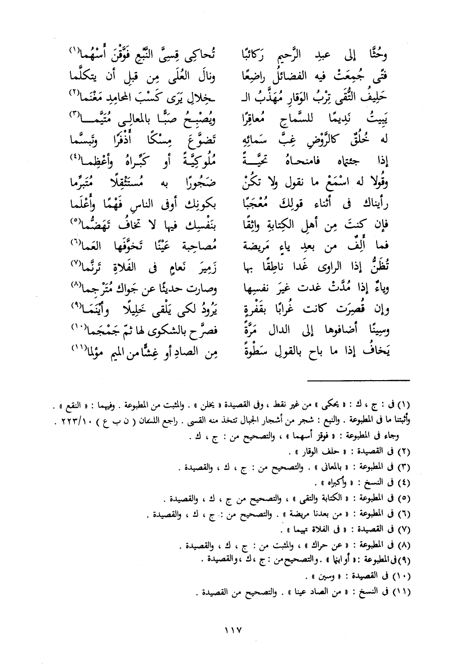(وحثا إِلَى عبد الرَّحِيم ركائبا ... تحاكي قسي النبع فوقن أسهما)