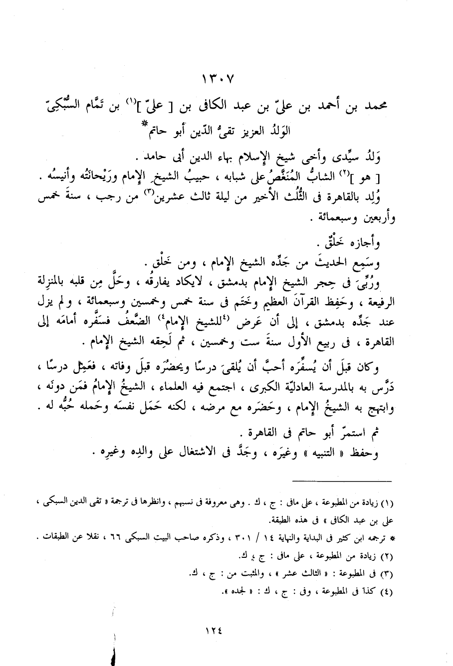 1307 - مُحَمَّد بن أَحْمد بن عَليّ بن عبد الْكَافِي بن عَليّ بن تَمام السُّبْكِيّ الْوَلَد الْعَزِيز تَقِيّ الدّين أَبُو حَاتِم