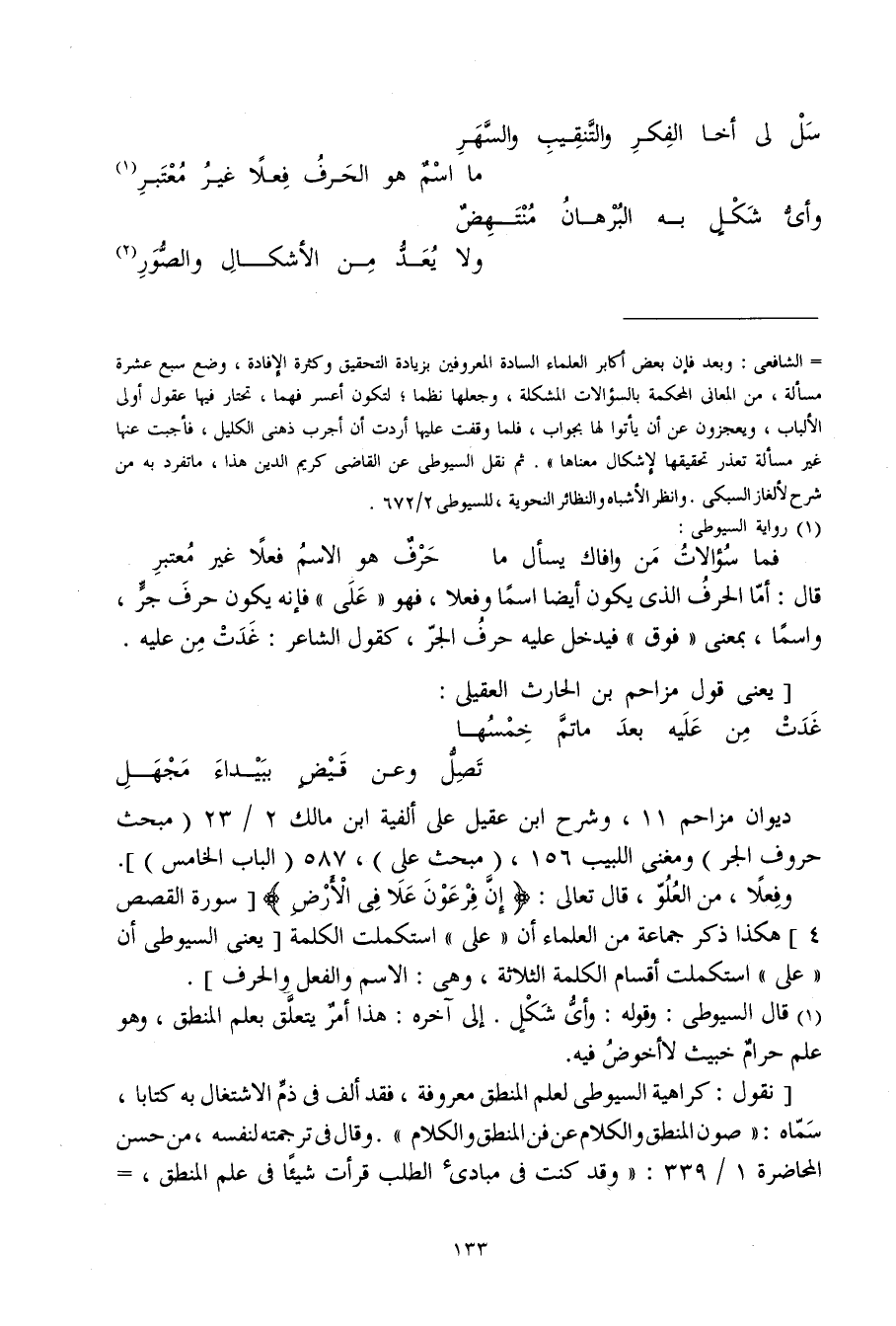 (سل لي أَخا الْفِكر والتنقيب والسهر ... مَا اسْم هُوَ الْحَرْف فعلا غير مُعْتَبر)