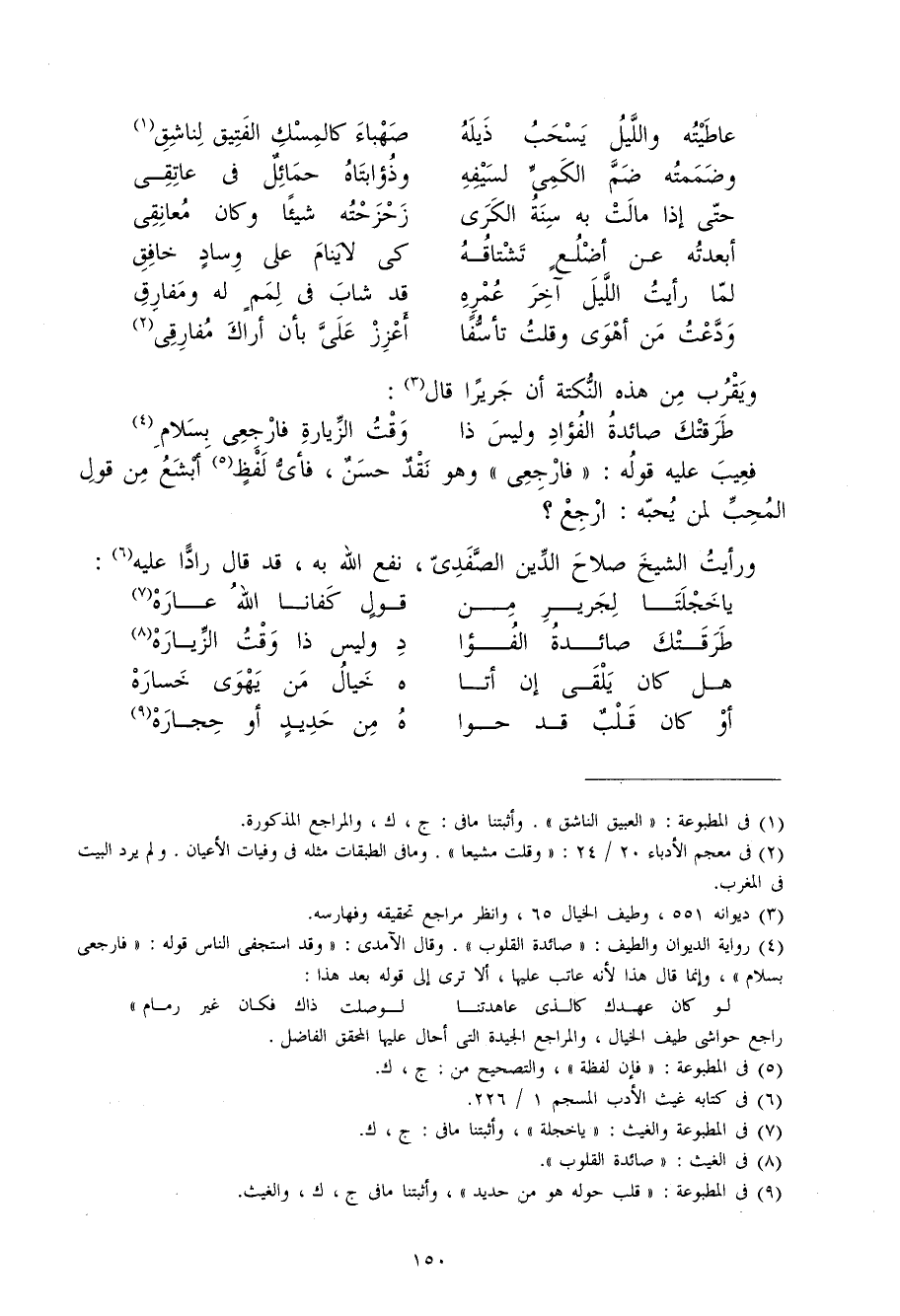 وَرَأَيْت الشَّيْخ صَلَاح الدّين الصَّفَدِي نفع الله بِهِ قد قَالَ رادا عَلَيْهِ
