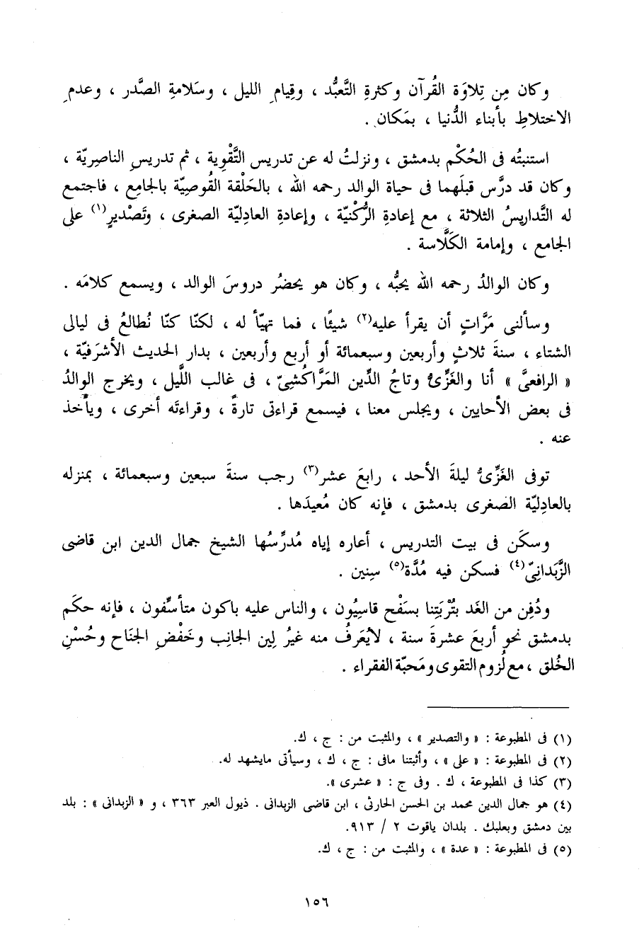 استنبته فِي الحكم بِدِمَشْق وَنزلت لَهُ عَن تدريس التقوية ثمَّ تدريس الناصرية وَكَانَ قد درس قبلهمَا فِي حَيَاة الْوَالِد رَحمَه الله بالحلقة القوصية بالجامع فَاجْتمع لَهُ التداريس الثَّلَاثَة مَعَ إِعَادَة الركنية وإعادة العالدية الصُّغْرَى وتصدير على الْجَامِع وإمامة الكلاسة