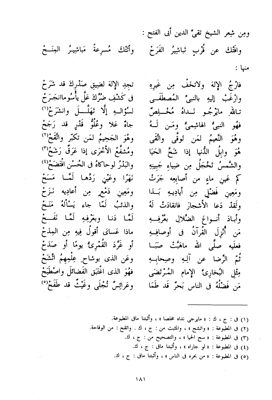 وَمن شعر الشَّيْخ تَقِيّ الدّين أَبُو الْفَتْح