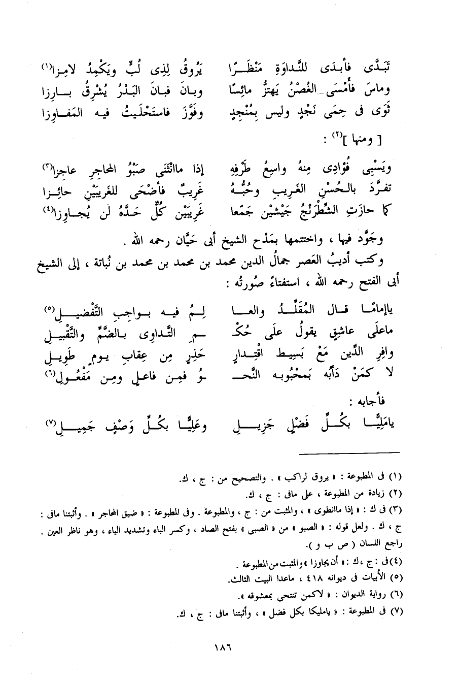 وجود فِيهَا واختتمها بمدح الشَّيْخ أبي حَيَّان رَحمَه الله