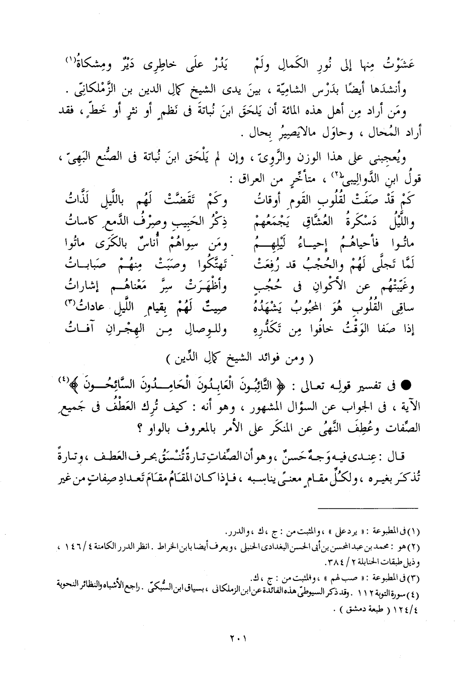 وَمن فَوَائِد الشَّيْخ كَمَال الدّين