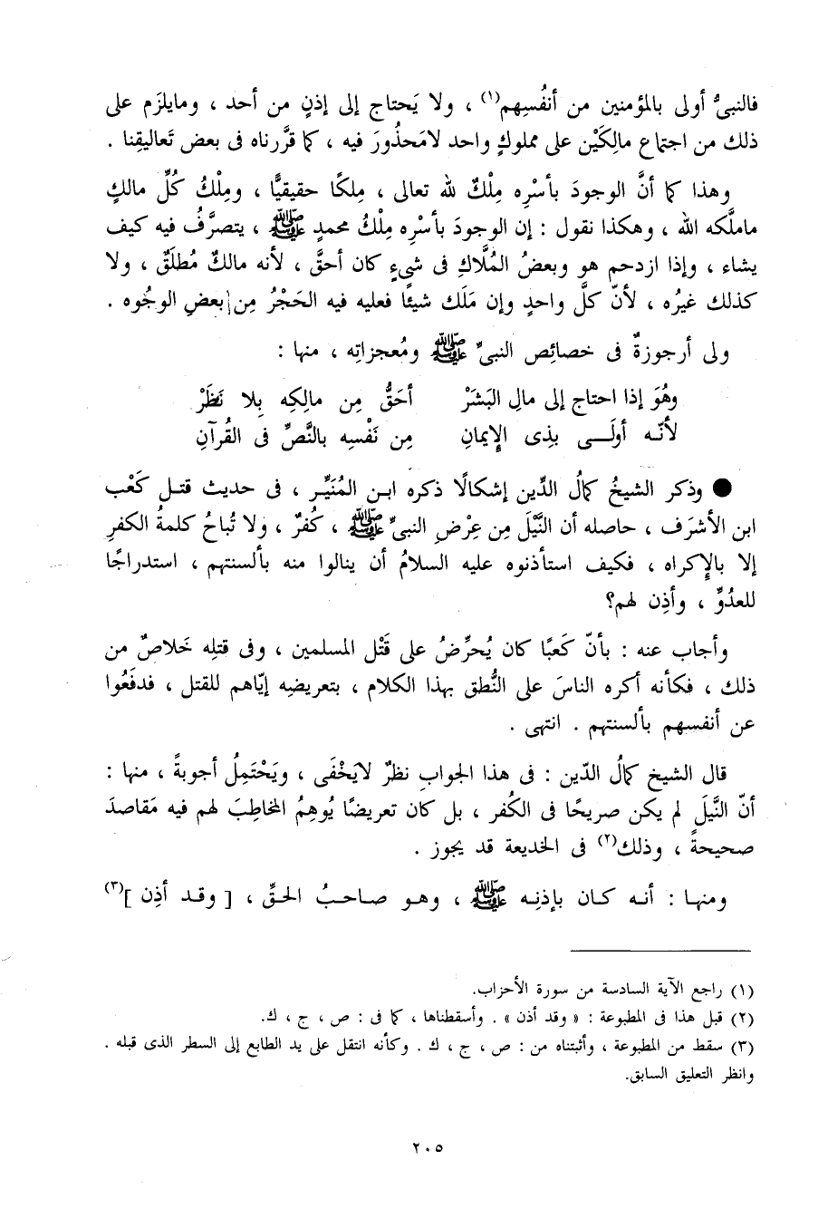 فالنبي أولى بِالْمُؤْمِنِينَ من أنفسهم وَلَا يحْتَاج إِلَى إِذن من أحد وَمَا يلْزم على ذَلِك من اجْتِمَاع مالكين على مَمْلُوك وَاحِد لَا مَحْذُور فِيهِ كَمَا قَرَّرْنَاهُ فِي بعض تعاليقنا