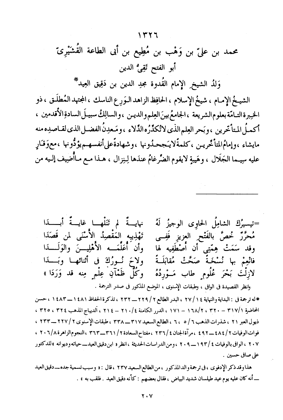 1326 - مُحَمَّد بن عَليّ بن وهب بن مُطِيع بن أبي الطَّاعَة الْقشيرِي أَبُو الْفَتْح تَقِيّ الدّين ولد الشَّيْخ الإِمَام الْقدْوَة مجد الدّين بن دَقِيق الْعِيد