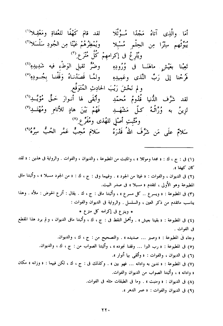 (لقد شرف الدُّنْيَا قدوم مُحَمَّد ... وَأبقى لَهَا أنوار حق مؤيد)