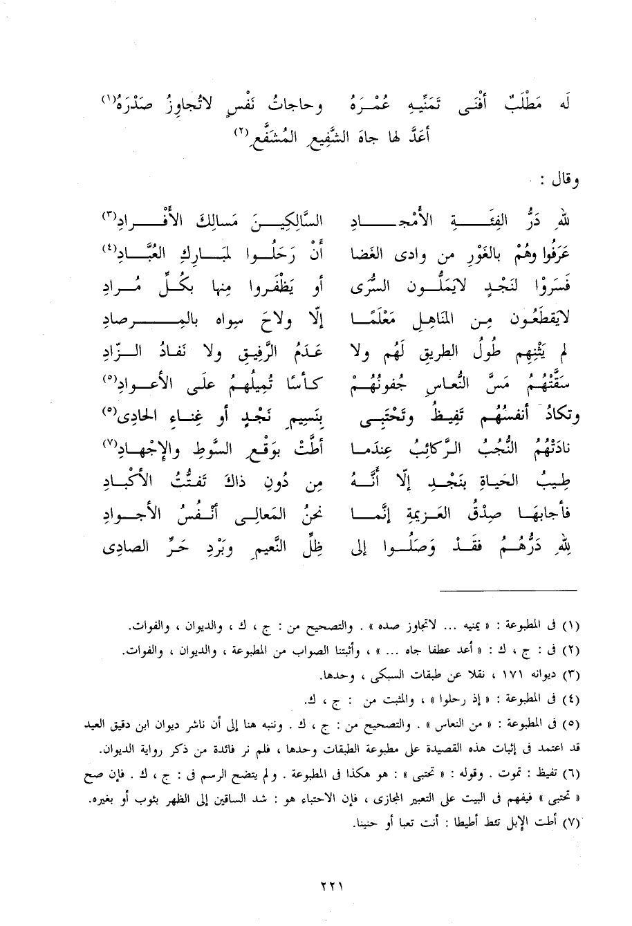 (لله در الفئة الأمجاد ... السالكين مسالك الْأَفْرَاد)