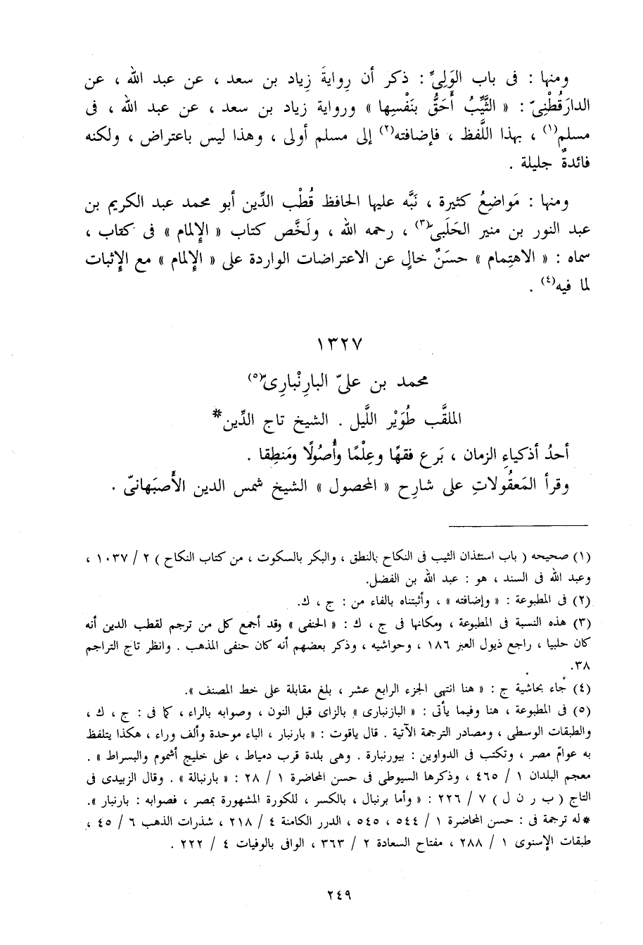 1327 - مُحَمَّد بن عَليّ البارنباري الملقب طوير اللَّيْل الشَّيْخ تَاج الدّين