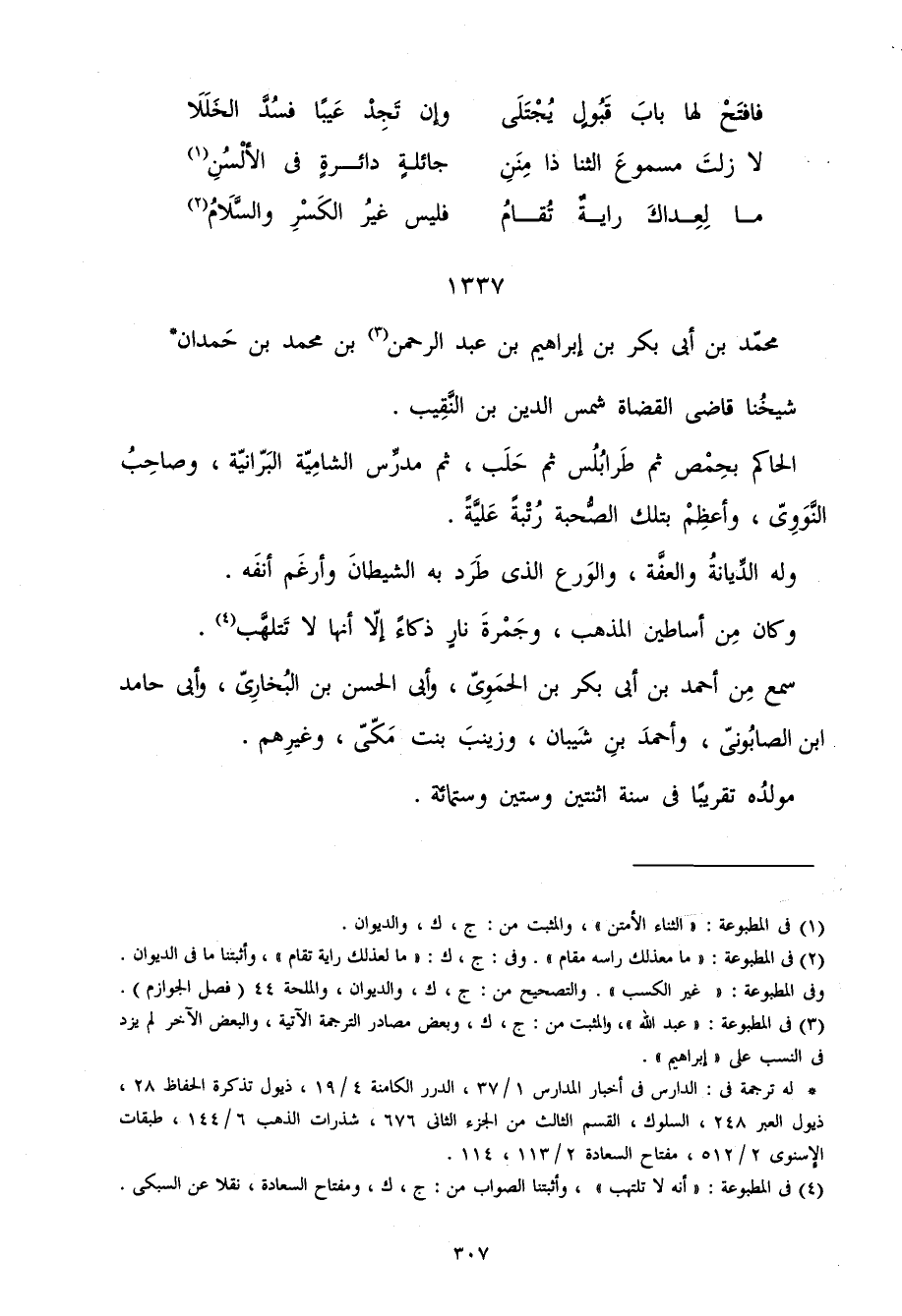 1337 - مُحَمَّد بن أبي بكر بن إِبْرَاهِيم بن عبد الرَّحْمَن بن مُحَمَّد بن حمدَان