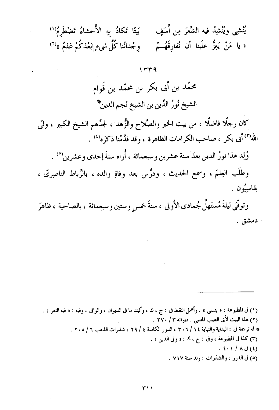 1339 - مُحَمَّد بن أبي بكر بن مُحَمَّد بن قوام الشَّيْخ نور الدّين بن الشَّيْخ نجم الدّين
