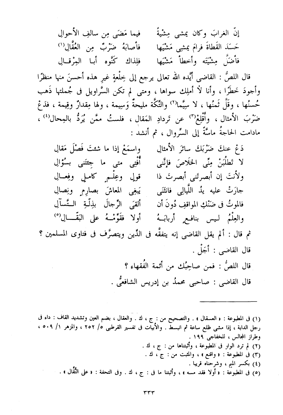 قَالَ القَاضِي صَاحِبي مُحَمَّد بن إِدْرِيس الشَّافِعِي