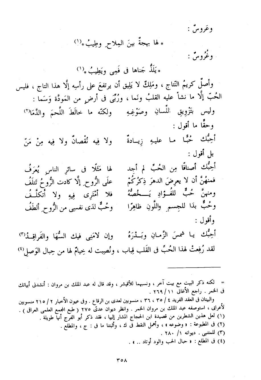 وأصل كريم النِّتَاج وَملك لَا يَلِيق أَن يرْتَفع على رَأسه إِلَّا هَذَا التَّاج فَلَيْسَ الْحبّ إِلَّا مَا نَشأ عَلَيْهِ الْقلب ونما وربي فِي أَرض من الْمَوَدَّة وسما