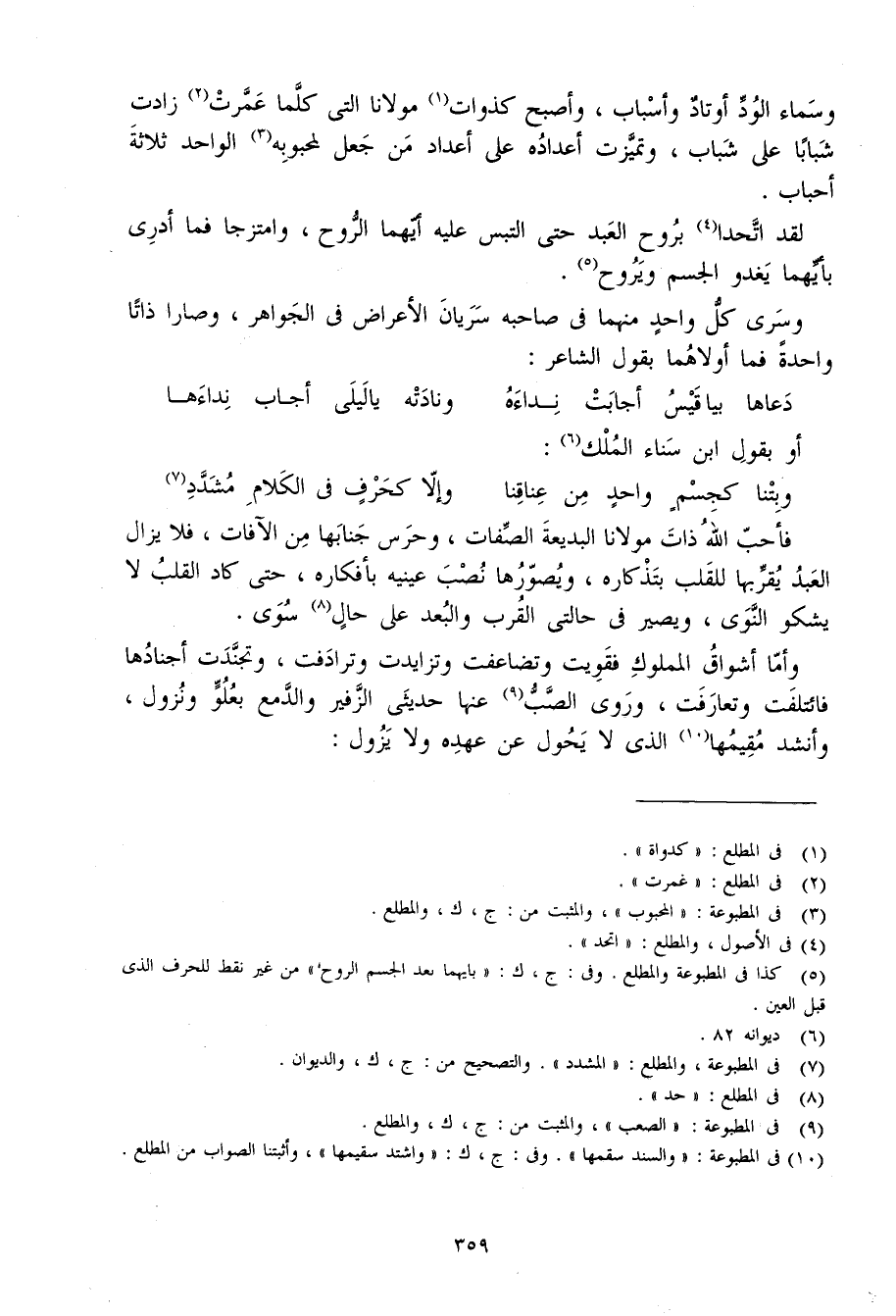 لقد اتحدا بِروح العَبْد حَتَّى الْتبس عَلَيْهِ أَيهمَا الرّوح وامتزجا فَمَا أردي بِأَيِّهِمَا يَغْدُو الْجِسْم وَيروح