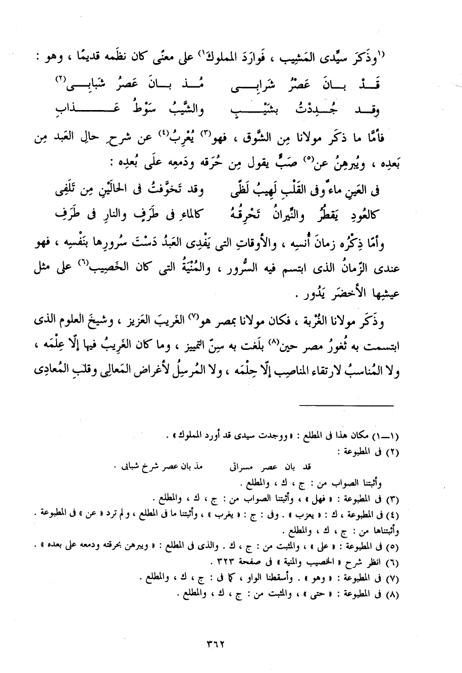 فَأَما مَا ذكر مَوْلَانَا من الشوق فَهُوَ يعرب عَن شرح حَال العَبْد من بعده ويبرهن عَن صب يَقُول من حرقه ودمعه على بعده
