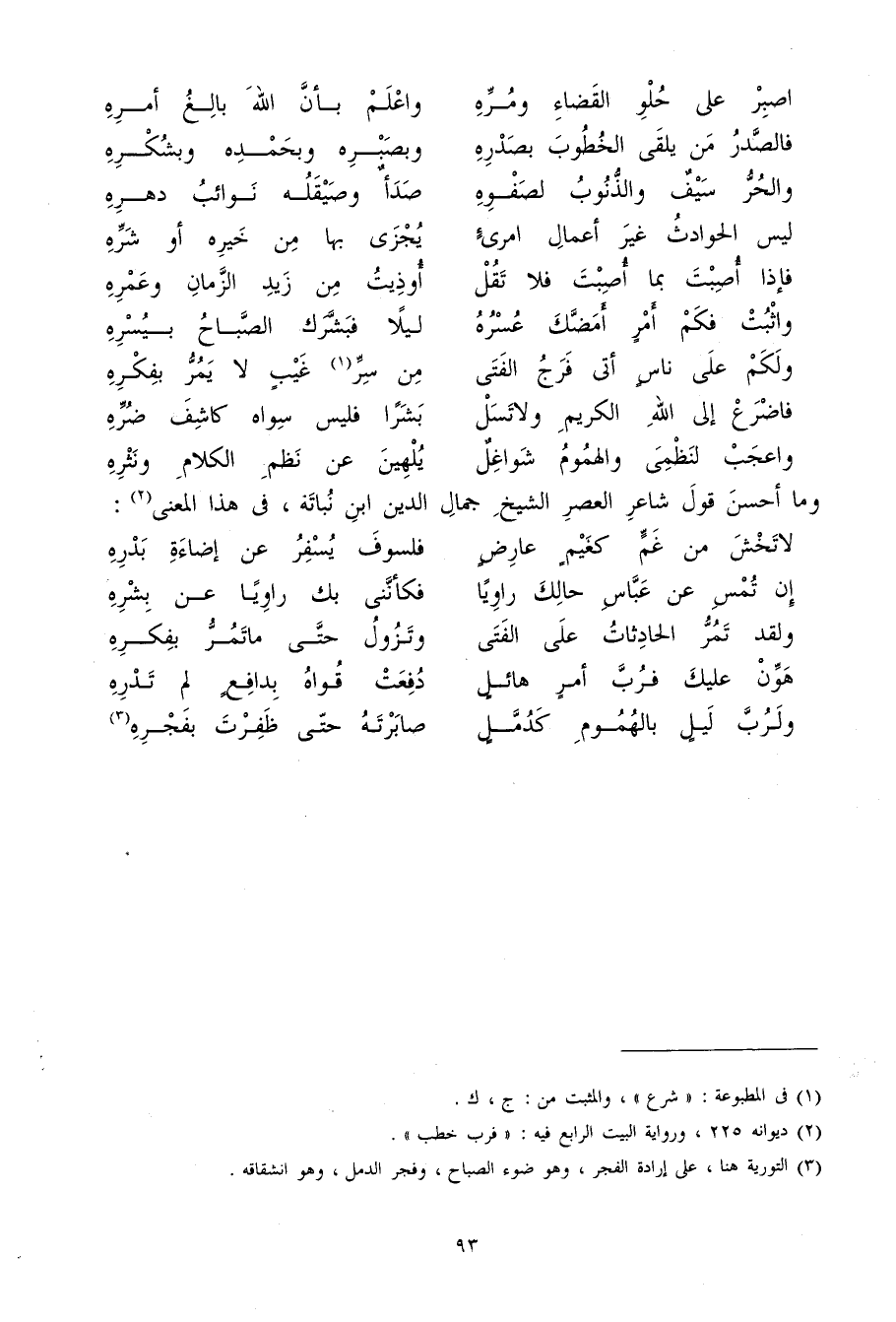 (فالصدر من يلقى الخطوب بصدره ... وبصبره وَبِحَمْدِهِ وبشكره)