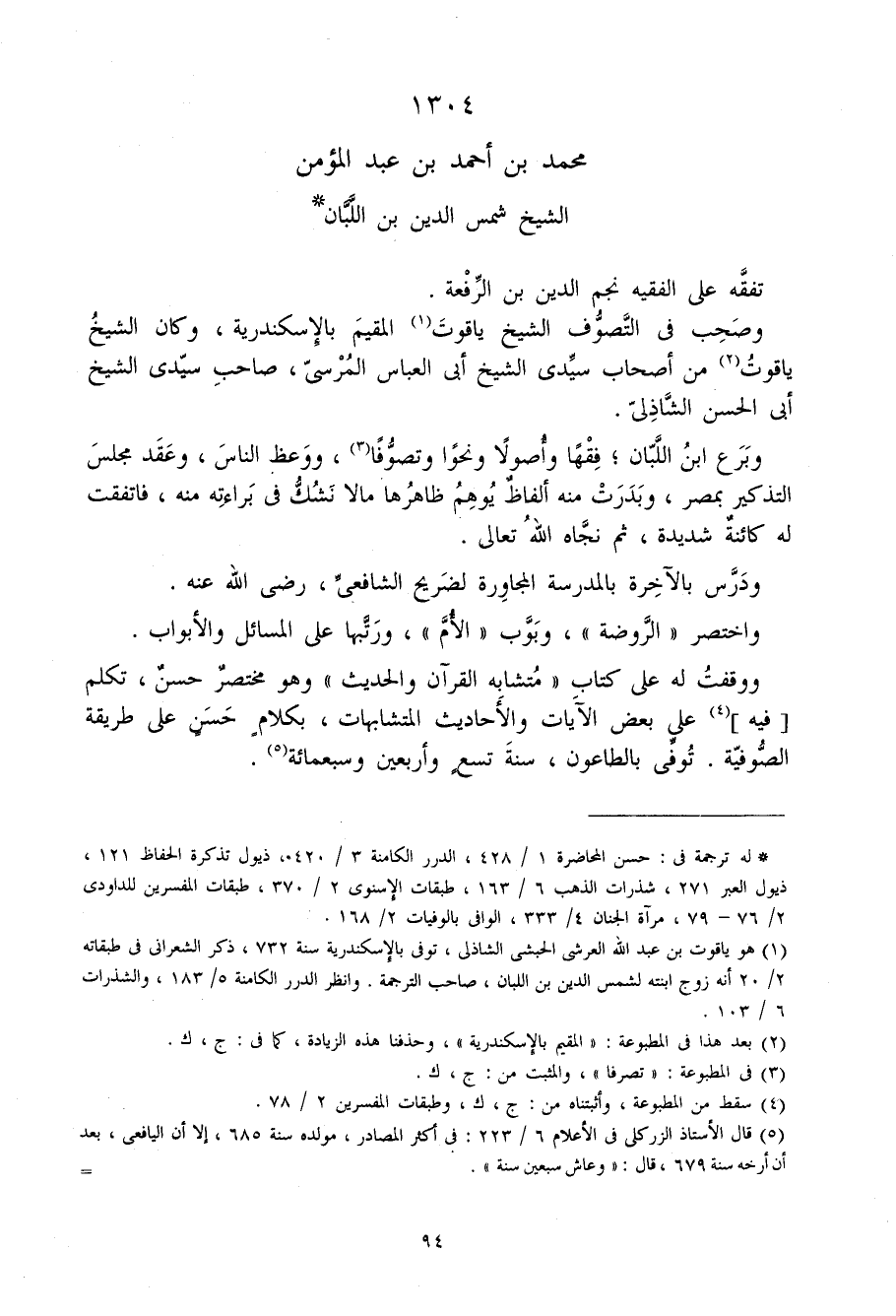 1304 - مُحَمَّد بن أَحْمد بن عبد الْمُؤمن الشَّيْخ شمس الدّين بن اللبان