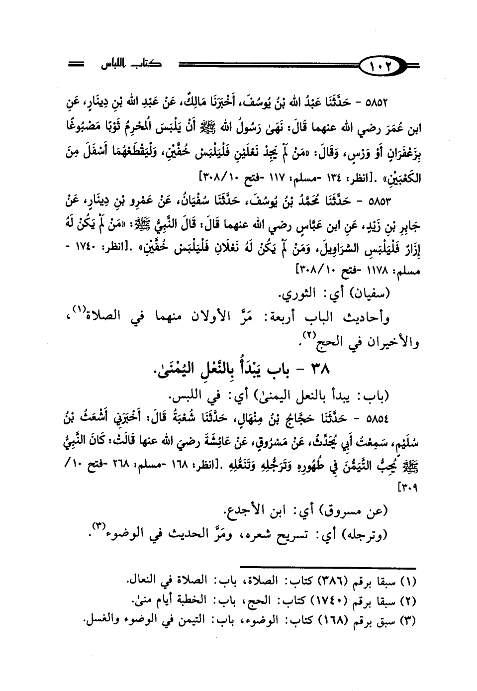 38 - بَابُ يَبْدَأُ بِالنَّعْلِ اليُمْنَى