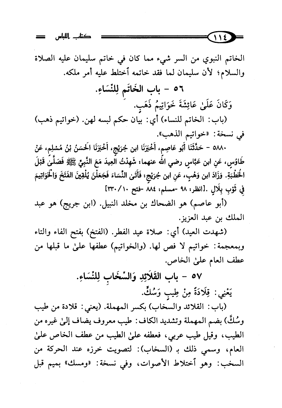 57 - بَابُ القَلاَئِدِ وَالسِّخَابِ لِلنِّسَاءِ