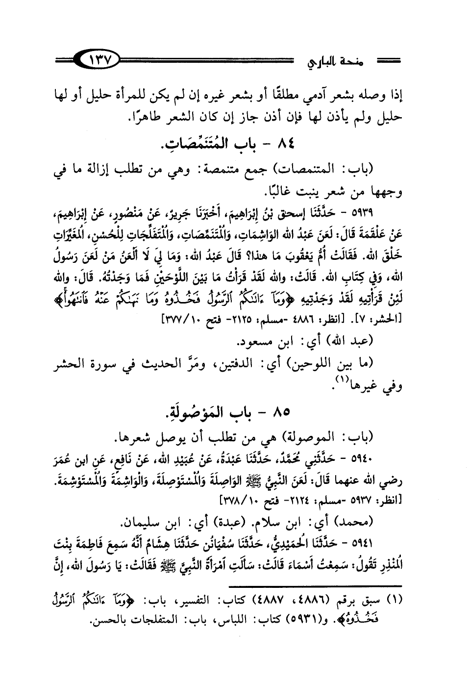 (¬1) سبق برقم (4886، 4887) كتاب: التفسير، باب: {وَمَا آتَاكُمُ الرَّسُولُ فَخُذُوهُ}. و (5931) كتاب: اللباس، باب: المتفلجات بالحسن.