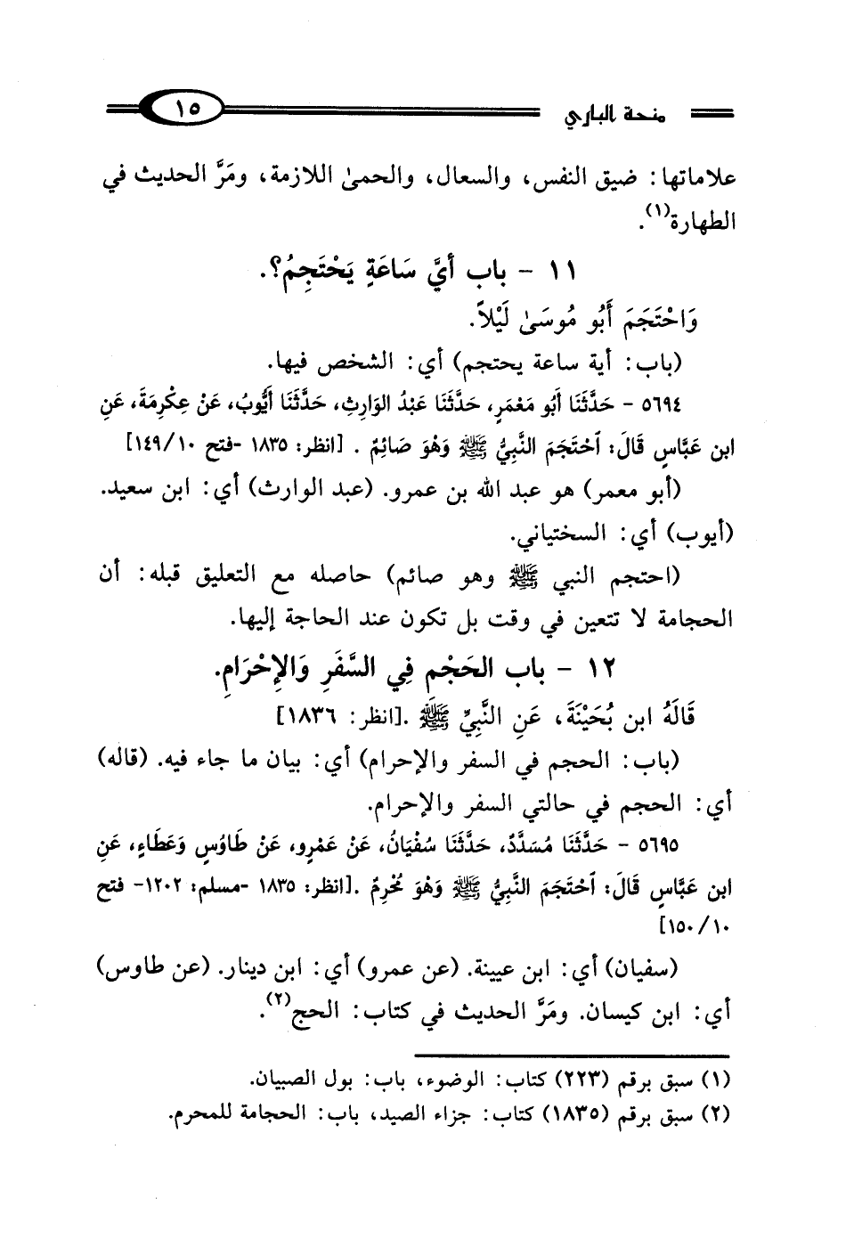 (¬2) سبق برقم (1835) كتاب: جزاء الصيد، باب: الحجامة للمحرم.