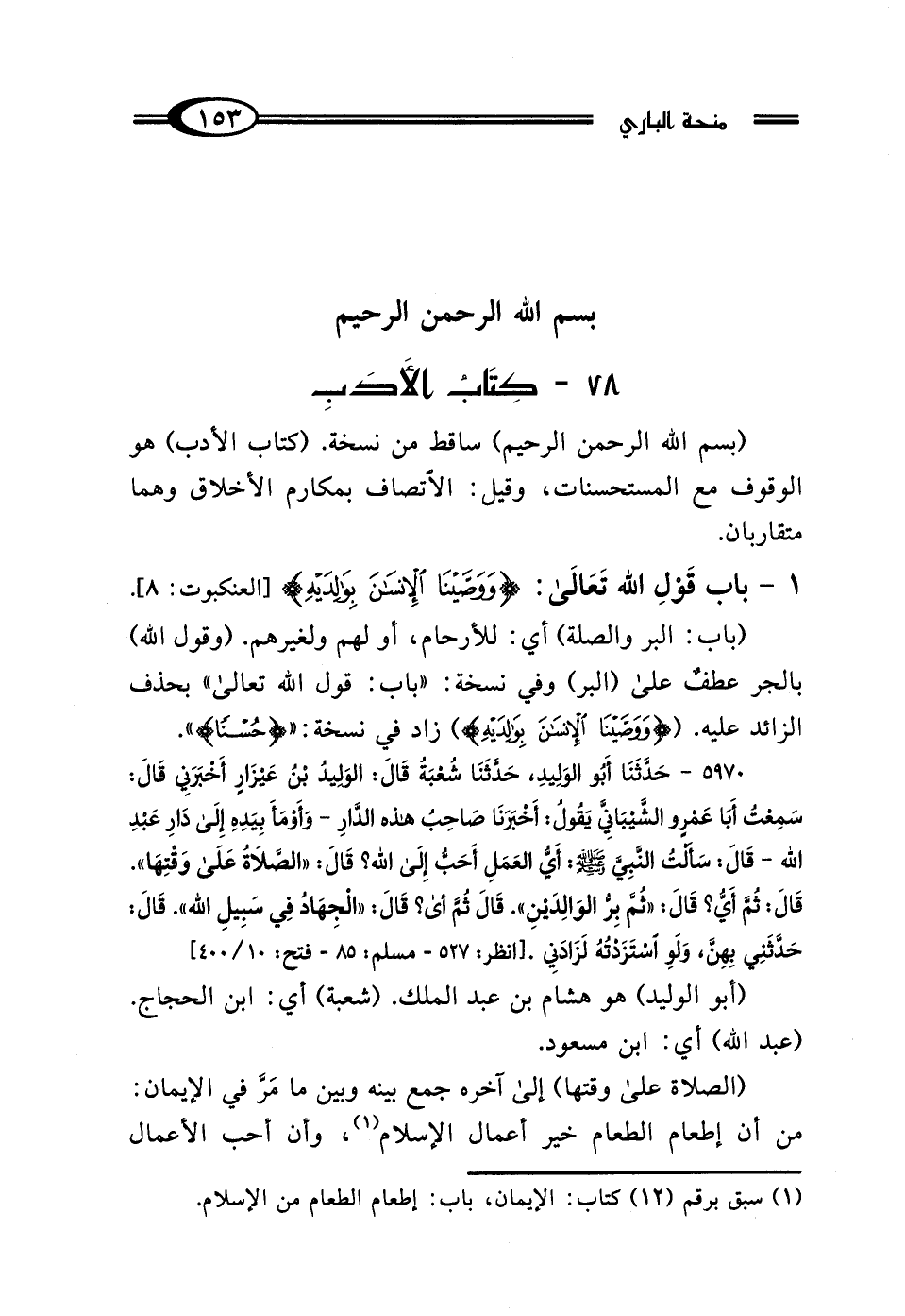1 - بَابُ قَوْلِ اللَّهِ تَعَالى: {وَوَصَّيْنَا الإِنْسَانَ بِوَالِدَيْهِ} [العنكبوت: 8]