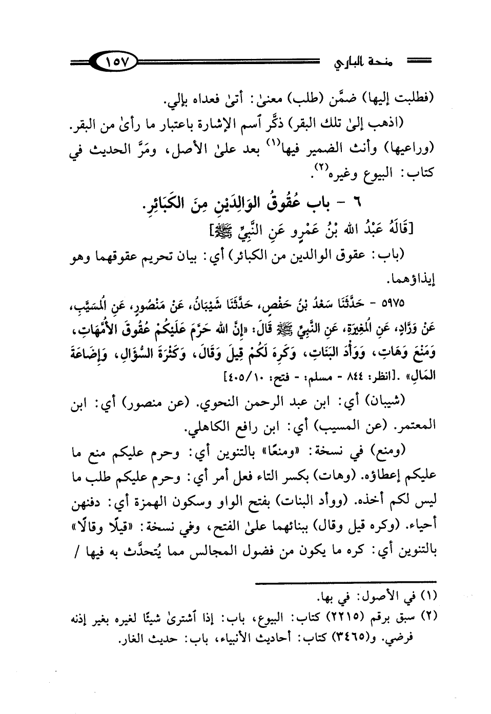 6 - بَابٌ: عُقُوقُ الوَالِدَيْنِ مِنَ الكَبَائِرِ