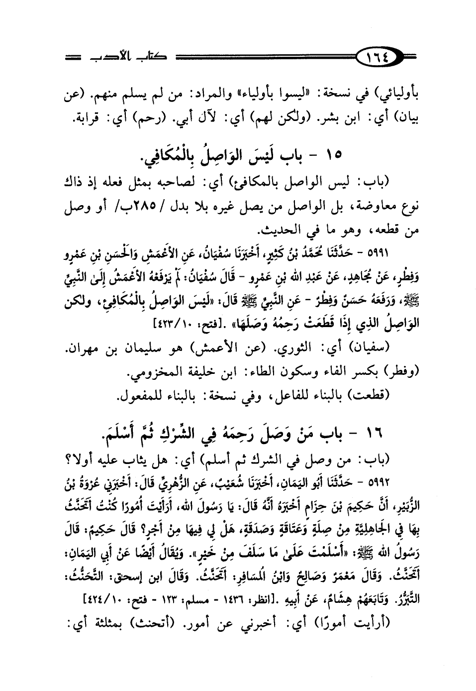 15 - بَابٌ: لَيْسَ الوَاصِلُ بِالْمُكَافِئِ